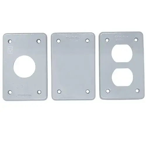 Contamos con tres modelos distintos, dependiendo del que requieras: la tapa para caja de registro ciega no tiene accesos, la sencilla cuenta con una y la dúplex tiene dos. Están hechas de metal resistente y galvanizado, y son especiales para las cajas FS.