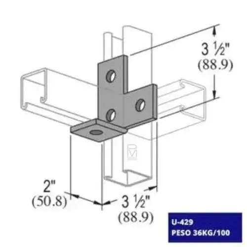 La conexión angular es una pieza esencial para unir perfiles de manera segura en cualquier construcción. Con un tamaño compacto de 88.9 x 88.9 x 50.6 mm y un peso de 36 kg/100, esta conexión está fabricada con materiales de alta resistencia y cuenta con un acabado que le otorga propiedades antioxidantes y anticorrosivas, garantizando una larga duración y protección contra factores externos.